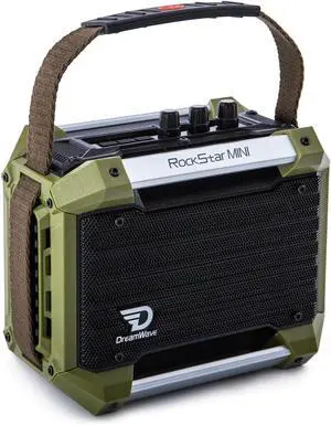 Dreamwave Rockstar Mini Outdoor Speaker, 40W 102dB Loud, 29H Playtime, IP66 Waterproof and Dustproof, Karaoke Ready, Portable Bluetooth Wireless, Immersive Bass, Party Sound SourceMilitary Green