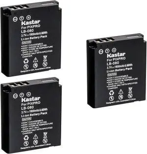 Kastar 3-Pack Battery + Slim USB Charger for Kodak LB-080 NCA-K/102 Spare Battery, Kodak PIXPRO SP1, SP1 HD, SP1-YL3, PlaySport Zx5, PIXPRO SP360, PIXPRO SP360 4K, PIXPRO ORBIT360 4K Camera
