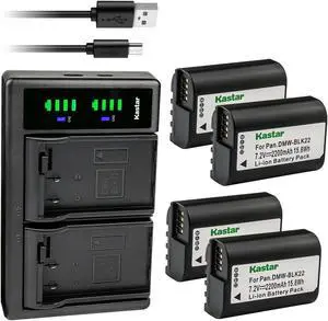 Kastar 4-Pack BLK22 Battery and LTD2 USB Charger Compatible with Panasonic DMW-BLK22 Lithium-Ion Battery, Panasonic DMW-BTC15 Battery Charger, Panasonic Lumix DC-S5 DC-S5KK Mirrorless Digital Camera