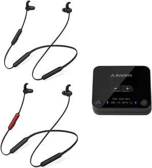 Avantree HT41866 - Wireless Earbuds for TV Listening (Set of 2), 20H Neckband Headphones with Bluetooth Transmitter for Optical Digital Audio, RCA, 3.5mm Aux Ported TVs, Plug & Play, No Audio Delay
