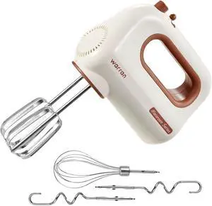 warran 300W Compact Lightweight Electric Hand Mixer, with Powerful Quiet DC Motor for Baking, Cake, Brownies, Cookie Dough, Ideal for Home Kitchen (White)