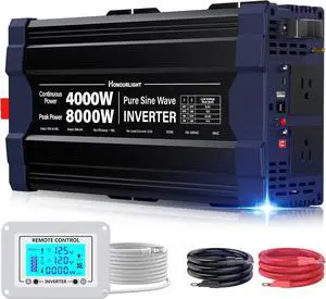 2025 New Upgraded 4000Watts Pure Sine Wave Inverter,Peak Power 8000W DC 12V to 120110V AC Solar Inverter with 2AC Outlets,USB Port,TypeC Port for Truck,RV,Vehicles,Remote Control LED Screen