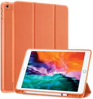 SIWENGDE Compatible for Apple iPad 9.7 Case 2018 iPad 6th Generation Cases/2017 iPad 5th Generation Case with Pencil Holder, Slim Soft Silicone Smart Trifold Stand Protective Cover(Orange)
