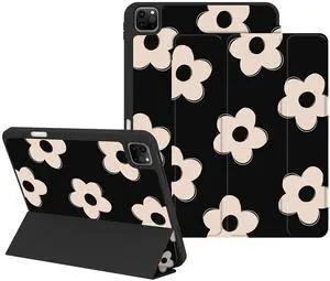 Lornpa Case for iPad Pro 12.9 inch 6th/5th/4th Generation(2022/2021/2020), Protective Case with Pencil Holder, Auto Wake/Sleep Trifold Smart Stand Cute Girly Cover for iPad Pro 6th Gen, Flower Black