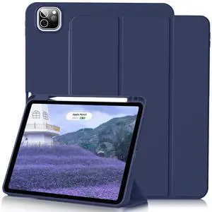 Lsmmpoba for iPad Pro 12.9 Inch Case 6th/5th/4th Generation (2022/2021/2020) with Pencil Holder, Smart Stand Cover with Soft TPU Back for iPad Air 13 inch Case, Auto Sleep/Wake, Navy
