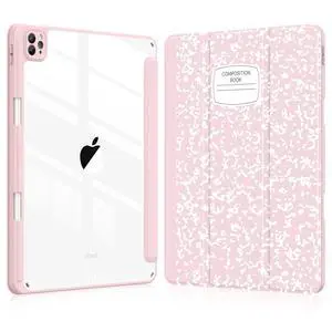 Soke Case for iPad Pro 12.9 Inch (6th/5th/4th/3rd Generation, 2022/2021/2020/2018) - Pencil Holder + Auto Sleep/Wake + Camera Protection, Transparent Shockproof Back Cover, Book Pink