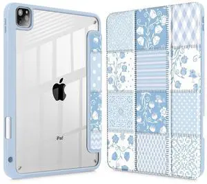 Tuiklol Case for iPad Pro 12.9 Inch M2 Case 2022 2021 2020 2018 Generation 6th/5th/4th/3rd,Built-in Pencil Holder Clear Transparent Protective Back Shell Cover, Patchwork Floral