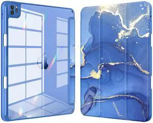 VIKESI for iPad Pro 12.9 Case 6th/5th/4th/3rd Generation 2022/2021/2020/2018,Clear Back Cover[Built-in Pencil Holder,Auto Sleep/Wake,Camera Protection] for 12.9-inch iPad Pro-Ocean Marble