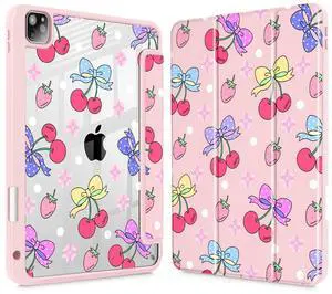 Mektron for iPad Pro M2 11-inch 4th/ 3rd/ 2nd/ 1st Gen Case 2022 2021 2020 2018 with Pencil Holder, Tablet Cover with Soft TPU Back Cover for 11 inch iPad Pro, Cherries Bows C353