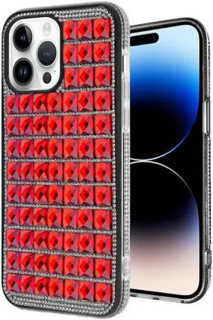 Diamond Series Crystal Rhinestones Case for iPhone 14 Pro Max - Red