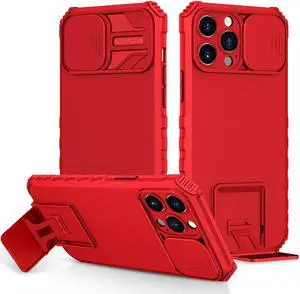 Camera Privacy Cover Hybrid Case with Kickstand for iPhone 14 Pro Max - Red