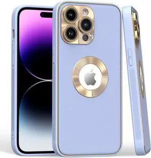 Luxury Leather Hybrid Case with Integrated Tempered Glass Camera Lens Protector for iPhone 15 Pro - Purple