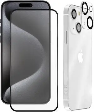Edge-to-Edge Full Coverage Tempered Glass Screen Protector + Camera Lens Protector for iPhone 15 Plus
