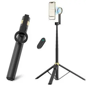 65" Magnetic Tripod for iPhone, Selfie Stick Tripod with Remote, 360° Rotatable Extendable Travel Tripod Phone Stand with Metal Ring, Compatible with iPhone Android