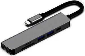 USB C Hub 6 In 1 Multifunction Adapter, USB C To HDMI-Compatible 4K, USB 3.0 Ports And SD/TF Card Reader For Pro