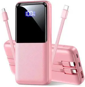 JAYSUING Portable Charger Power Bank - 20000mAh Fast Charging Portable Battery Pack with Built in USB-C(22.5W) and iOS(20W) Output Cables (1 Pack)