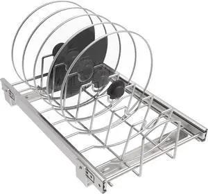 Slide Out Pan and Pot Lid Organizer For Under Cabinet, Wire Dividers Kitchen Pull Out Pot Lid Rack Organization And Storage, Full-Extension Rail, 12" W X 20" D