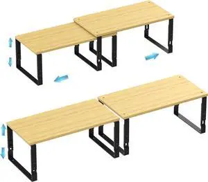 Expandable Kitchen Cabinet Organizer Shelves Stackable Adjustable Metal and Wood Storage Racks for Countertop, Pantry, Garage Set of 2 Spice Rack Easy Assembly, Space-Saving(2 Packs/Large/Black)