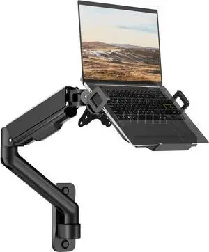 2-in-1 Laptop Wall Mount with Detachable Tray | Gas Spring Adjustable Arm for 12-17 Inch Laptops & Monitors | Full Motion Articulating Stand | Holds 2.2-19.8 lbs (Black)