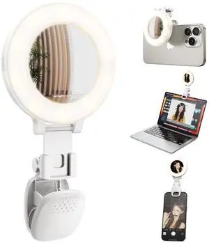 TELESIN Clip-on Selfie Ring Light, Rechargeable Portable 360° LED Selfie Fill Light with Mirror for Phone/iPhone Photography, Computer Laptop Video Conference, TikTok, Zoom Calls, Girl Makeup