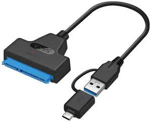 USB 3.0 & USB-C to SATA All-in-One Adapter Cable 2-in-1 Type-C to SATA Converter for 2.5-Inch Hard Drive, 20cm Data Transfer Cable
