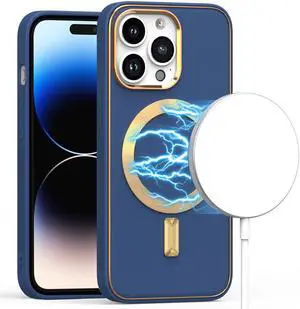 MagSafe Compatible Leather Hybrid Case for iPhone 14 Pro - Blue