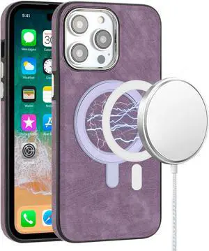 MagSafe Compatible Premium Leather Case for iPhone 14 Pro Max - Purple