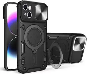 Elite Series Hybrid Case with MagSafe Ring Stand and Camera Lens Cover for iPhone 15 - Black