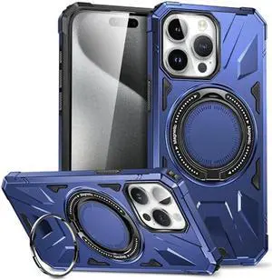 Military Grade TUFF MagSafe Case with Rotating Ring Stand for iPhone 15 Plus - Blue