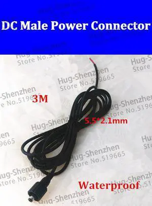 2pcs/lot DC waterproof male connector DC5.5*2.1mm 3m with 3M cable for Monitoring /led power cable