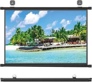 Outdoor Projector Screen Manual Pull Down 60 Inch 16:9 HD Video Projection Screens Roll Down Ceiling Projection Curtain(60in/16:9)