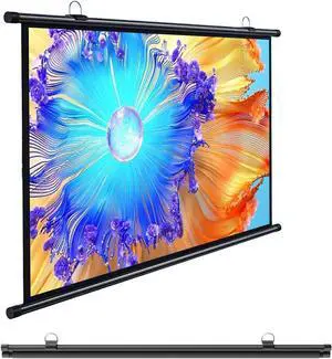 Projector Screen Portable Indoor/Outdoor Movie Theater Screen, Wall Mounted Projector Screen 178° Viewing Angle Movie Widescreen Viewing Movie Screens, Black Backing Manual Pull Down Projector Screen(