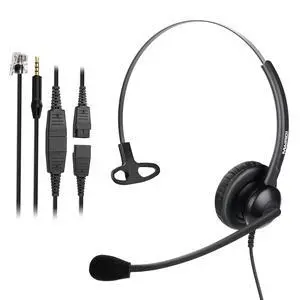 Phone Headset with RJ9 & 3.5mm Jacks for Call Center Deskphone Cell Phone PC Laptop, Office Landline Telephone Headset with Microphone Noise Canceling for Polycom Avaya Nortel