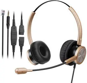 Telephone Headset with Microphone Noise Canceling, Binaural Call Center Office Headphone with RJ9 Jack & 3.5mm Connector for Landline Phone Cell Phone PC Laptop, Work for Polycom Avaya Nortel