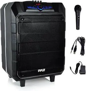 Pyle PA Speaker Job Site Radio Karaoke Machine 2 Microphone Input 1 Mic Included Water Resistant Marine Grade Bluetooth Compatible USB Micro SD Card Reader Aux Input,FM Radio 12" Black (PWM1235BT)