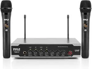 Pyle Wireless Microphones, Professional UHF Dual Microphones for Karaoke, Wireless Dynamic Microphone System Set with Rechargeable Receiver,Plug and Play, Speech, Wedding, Church, PA System