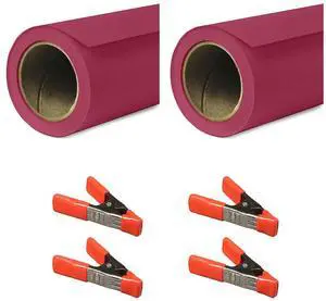 Savage 53"x36' Widetone Seamless Background Paper, Crimson, 2-Pack, Bundle with 4x 1-1/4x1" Steel Spring Orange Clamp