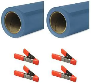Savage 53"x36' Widetone Seamless Background Paper, Blue Jean, 2-Pack, Bundle with 4x 1-1/4x1" Steel Spring Orange Clamp