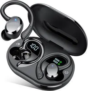 Open Ear Clip Headphones, True Wireless Earbuds Bluetooth 5.3, Sports Earbuds Built-in Microphone with Earhooks & Ear Hook, Wireless Charging Case & Display, Waterproof Fitness Earbuds for Running