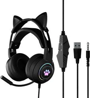 Gemdeck Wired Headphones Cute Cat Ear Headset Bluetooth Foldable Headphones Gift