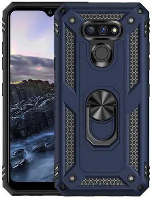 Navy Blue Secure Grip Ring Stand Case Cover for LG Harmony 4, Premier Pro Plus