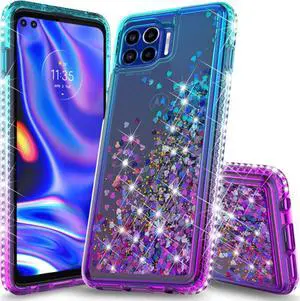 Teal Purple Liquid Sand Glitter Waterfall Case Cover for Motorola Moto One 5G UW