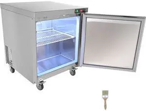 Vevor Commercial Refrigerator, 28" Undercounter Worktop Refrigerator, 7.4 Cu. Ft Thick Stainless Steel Refrigerated Food Prep Station Fan Cooling Single Door Worktop Fridge With Lock For Bar