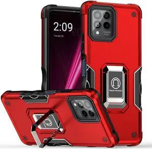 Military Grade Shockproof Hybrid Armor Case with Ring Grip for T-Mobile REVVL 6 Pro 5G - Red