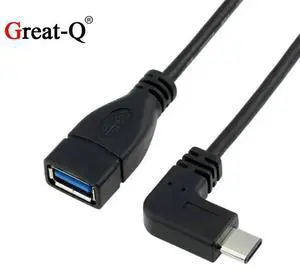 SM Right Angled 90 Degree USB-C Type-C to USB 2.0 Female OTG Cable for Cell Phone Tablet & Laptop Black