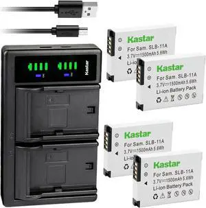 Kastar 4-Pack Battery and LTD2 USB Charger Replacement for Samsung SLB-11A SLB11A Battery, Samsung CL65, CL80, EX1, HZ25W, HZ30W, HZ35W, HZ50W, ST1000, ST5000, ST5500, TL240, TL320 Digital Camera- Part Number: CH-LTD2-4B-SLB11A-J