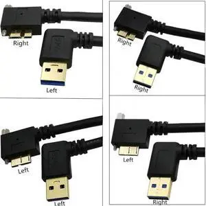 Gold-plated 5Gbps usb3.0 male left / right angled to micro B left / right angled cable with screw 25cm