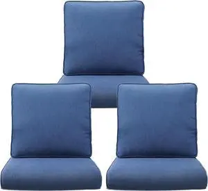 Outdoor Chair Cushions 3 Packs - Outside Durable Thick Replacement Back and Seat Cushion 22x24 with Zipper Cover for Patio Glider Rocking Chairs Loveseat Couch Blue/Regular