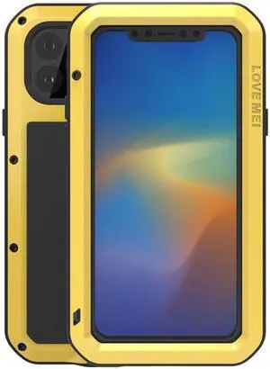 Love Mei Aluminum Metal Armor For iPhone 11 Pro Max Shockproof Dirtproof Full Body Heavy Duty Case For iPhone 11 Pro Max (Yellow)