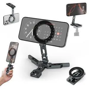 Magnetic Phone Tripod Stand,Foldable Cell Phone Holder for Magsafe with Arca-Swiss,1/4'' Screw Hole,Cold Shoe Mount,Pocket Mini Aluminum Selfie Stick Tripod Mount for iPhone/Android,Desk,Travel